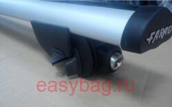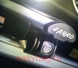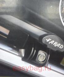 Багажник FARAD (ФАРАД) на низкие интегрированные рейлинги лежащие заподлицо на крыше производятся в Италии и имеют аэродинамический профиль что позволяет двигаться с максимальной скоростью не испытывая дискомфорта от свиста поперечин. Авто багажники выполнены из анодированного алюминия, который не боится любых погодных условий и не подвержен гниению и коррозии от разнообразной химии, которой в изобилии на дорогах зимой. Опоры багажника снабжены металлическими ключами – секретками, которые служат для крепления багажника к низким рейлингам и защитой от снятия посторонними лицами. Верхний паз закрывается резинкой, он создан для установки дополнительного оборудования (лыжных, велосипедных креплений, ограничителей груза, грузовых корзин и т.д.). Гарантия на багажник 3 года.