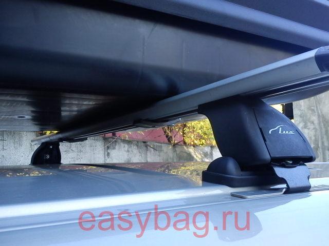 Багажники Люкс производятся в России (Москва). Состоит из четырех опор, крепежного комплекта и двух поперечных дуг. Простой и надежный багажник, а главное это цена. Подходится на большинство автомобилей. Поперечины бывают 2-х видов аэродинамическими и прямоугольными. Разница между ними в создаваемом шуме. Аэродинамические выполнены из аллюминия в форме овала, что уменьшает сопротивления воздуха. Прямоугольные сделаны из стали и покрыты термопластиком. Крепежный комплект это либо 1) так называемые "лапки" которые крепятся за дверной проем автомобиля, 2) штатное место предусмотренное заводом изготовителем авто. Единственный минус этого багажника, отсутствия ключей закрывающих багажник и невозможность установить их.