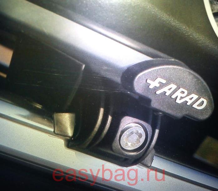 Багажник FARAD (ФАРАД) на низкие интегрированные рейлинги лежащие заподлицо на крыше производятся в Италии и имеют аэродинамический профиль что позволяет двигаться с максимальной скоростью не испытывая дискомфорта от свиста поперечин. Авто багажники выполнены из анодированного алюминия, который не боится любых погодных условий и не подвержен гниению и коррозии от разнообразной химии, которой в изобилии на дорогах зимой. Опоры багажника снабжены металлическими ключами – секретками, которые служат для крепления багажника к низким рейлингам и защитой от снятия посторонними лицами. Верхний паз закрывается резинкой, он создан для установки дополнительного оборудования (лыжных, велосипедных креплений, ограничителей груза, грузовых корзин и т.д.). Гарантия на багажник 3 года.