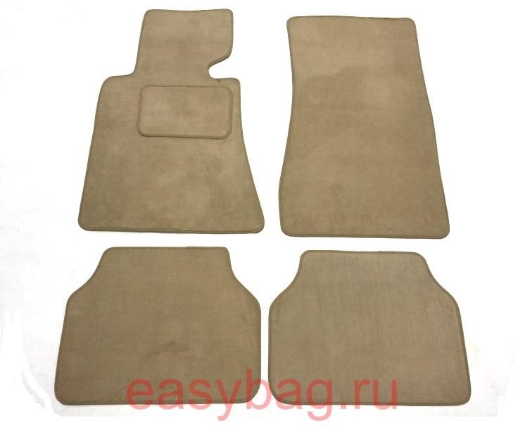 Текстильные автомобильные коврики в салон. Выпускаются под конкретную марку и модель автомобиля и четко повторяют контуры пола. Коврики состоят из трех слоев. Верхний слой текстильный, внутренний резиновый и внешний пористая резина. Верхний слой по краям ковра отделан кожей бежевого или церного цвета взависимости от цвета текстильных автоковриков. Накладка под пятку водителя текстильная и обшита кожей в цвет ковров.