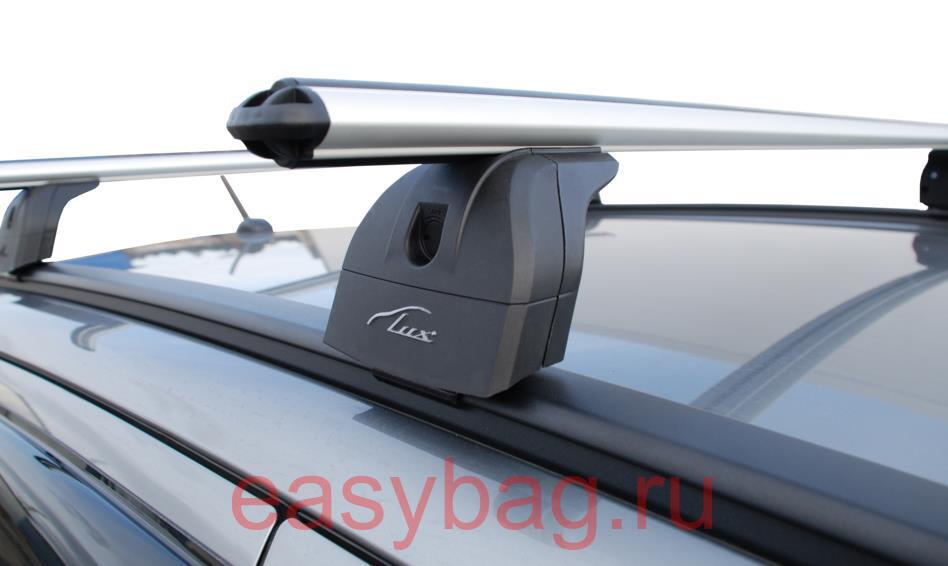 Багажник аэродинамический на интегрированные рейлинги Люкс для Kia Soul II (БК2*Soul13i*1.2 м Аэро)Багажники на крышу Люкс для автомобилей с интегрированными рейлингами (рейлинги которые лежат на крыше вплотную, без просвета между крышей и рейлингом). Багажник выпускается в России. Состоит из трех частей: опоры, крепежного комплекта и двух поперечин (аэро или с прямоугольным сечением 20/30). Разница между аэро дугами и прямоугольными в шуме создаваемым ветром при движении. Грузоподъемность багажника, с любым типом поперечин состовляет 75 кг. Так же, можно обезопасить свой багажник комплектом личинок с металлическими ключами. Смотрите сопутствующие товары. Ключи вставляются в крышки опор багажника, что не позволит снять его посторонним лицами.