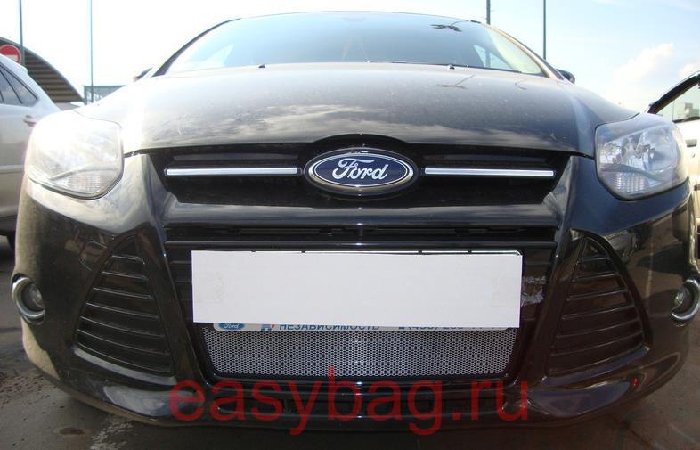 Сетка для защиты радиатора автолидер для Ford Focus III (Форд Фокус III) низ хром