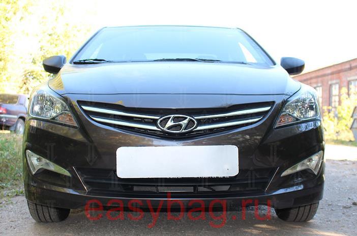 Защита радиатора автолидер для "ОПТИМАЛ" для Hyundai Solaris 2014- (Хендэ Солярис) низ черная