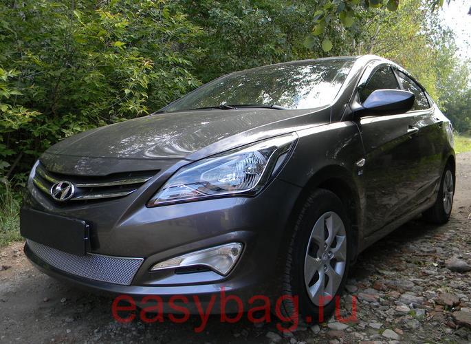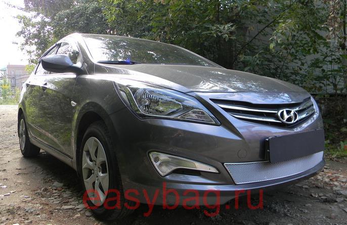 Защита радиатора автолидер для Hyundai Solaris Premium (Хендай Солярис) низ хром 2014-