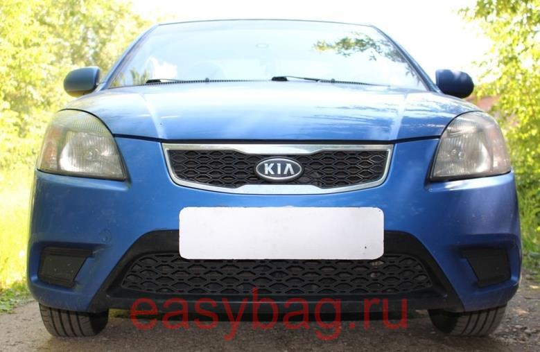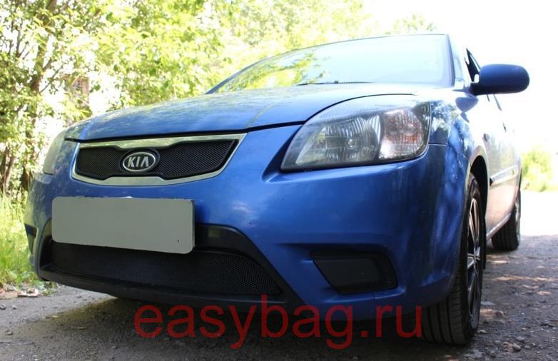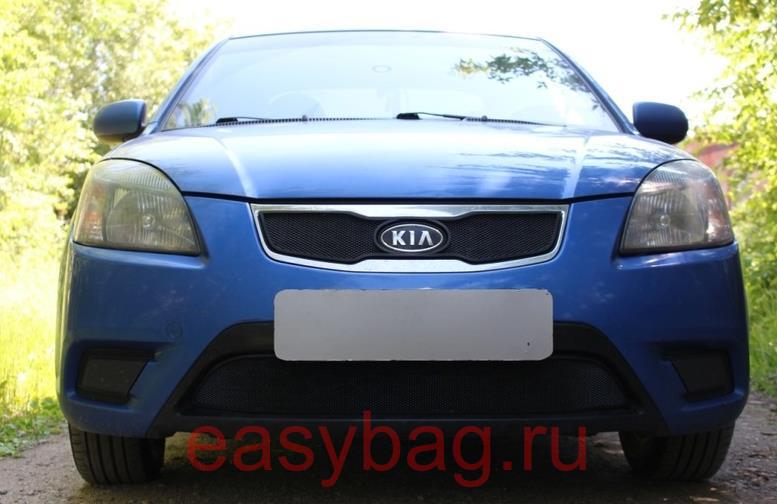 Защитная сетка алюминиевая мелкая ячейка для Kia Rio II Рестайлинг 2009-2011 верхняя и нижняя черная
