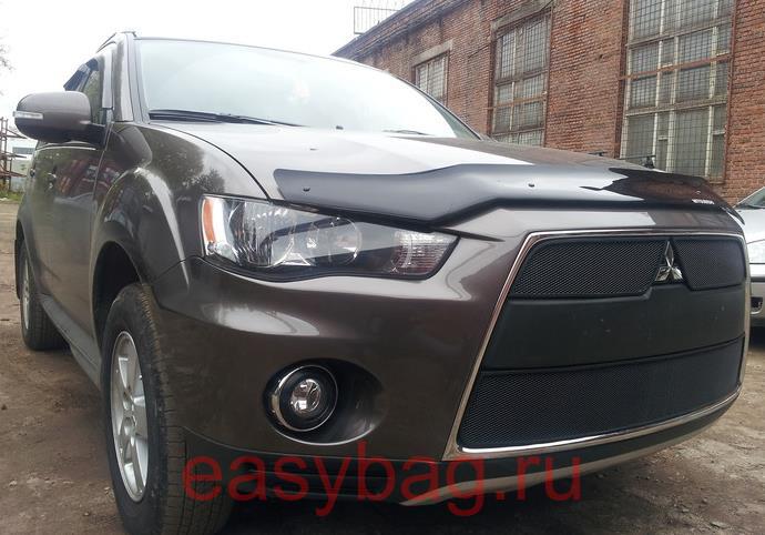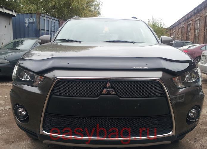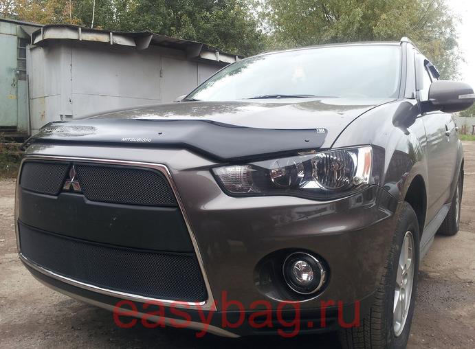 Защита радиатора Mitsubishi Outlander XL (Митсубиси Аутлендер XL) верх и низ черная