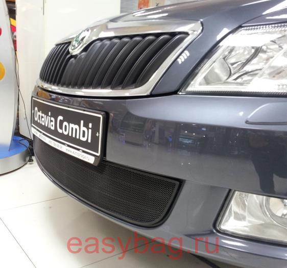 Защита радиатора Skoda Octavia A5 (Шкода Октавия A5) низ черная