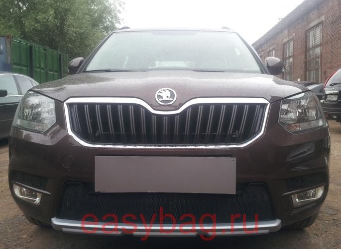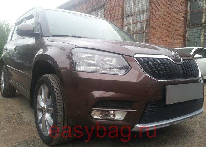 Защита радиатора Skoda Yeti City (Шкода Йети Сити с парктроником) низ черная