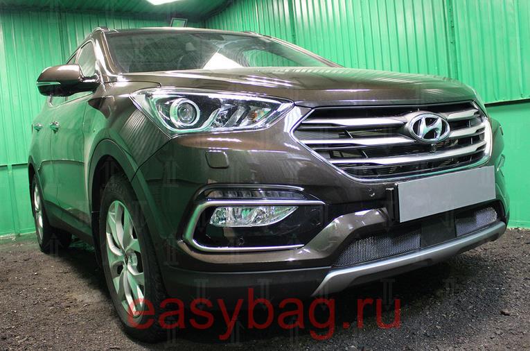Защита радиатора "Стандарт" для автомобиля HYUNDAI SANTA FE III (рестайлинг) 2015- с датчиком АСС 2 части, низ черный