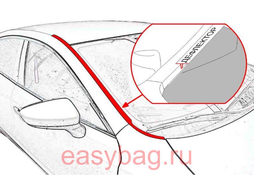 Так же дефлектор можно обрезать,  отступив от верхней границы лобового стекла не менее 10 см.