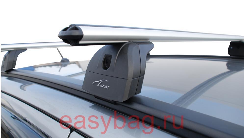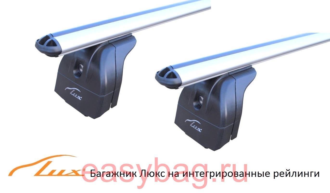 Багажники на крышу Люкс для автомобилей с интегрированными рейлингами (рейлинги которые лежат на крыше вплотную, без просвета между крышей и рейлингом). Багажник выпускается в России. Состоит из трех частей: опоры, крепежного комплекта и двух поперечин (аэро или с прямоугольным сечением 20/30). Разница между аэро дугами и прямоугольными в шуме создаваемым ветром при движении. Грузоподъемность багажника, с любым типом поперечин состовляет 75 кг. Так же, можно обезопасить свой багажник комплектом личинок с металлическими ключами. Смотрите сопутствующие товары. Ключи вставляются в крышки опор багажника, что не позволит снять его посторонним лицами.