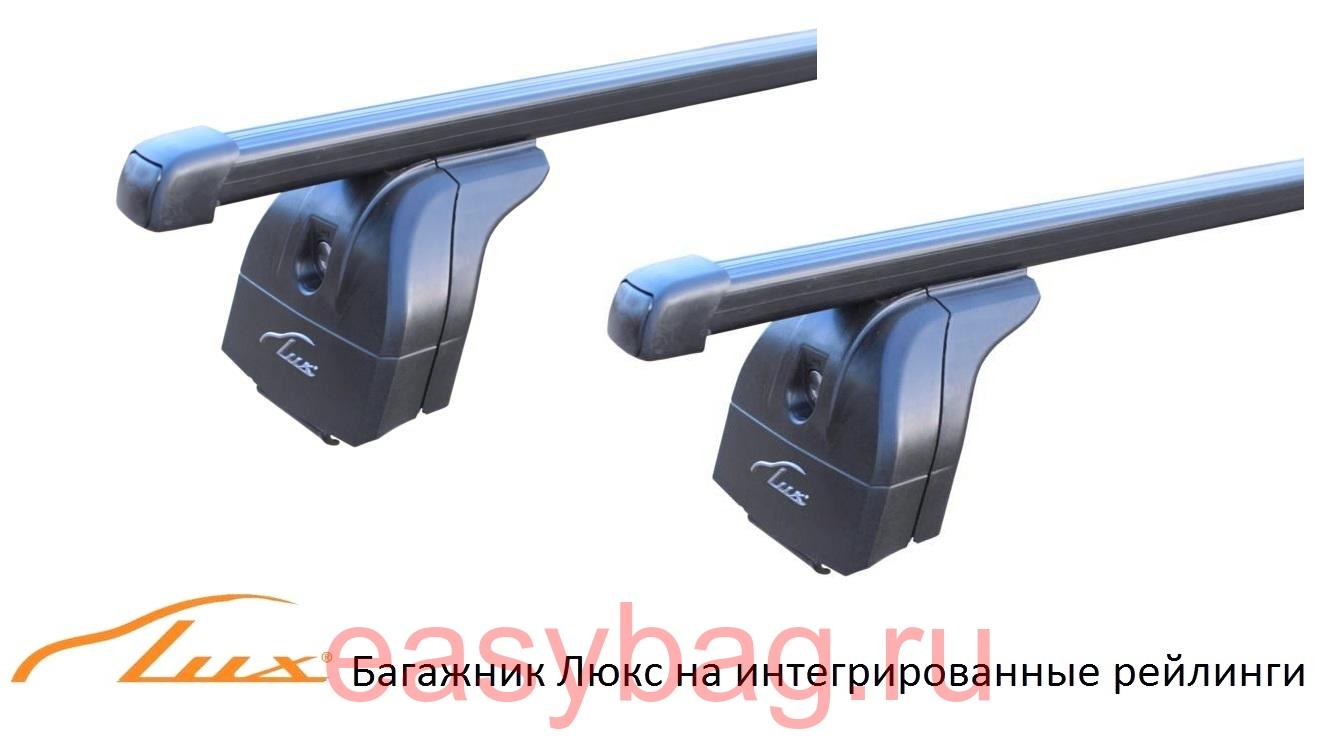 Багажники на крышу Люкс для автомобилей с интегрированными рейлингами (рейлинги которые лежат на крыше вплотную, без просвета между крышей и рейлингом). Багажник выпускается в России. Состоит из трех частей: опоры, крепежного комплекта и двух поперечин (аэро или с прямоугольным сечением 20/30). Разница между аэро дугами и прямоугольными в шуме создаваемым ветром при движении. Грузоподъемность багажника, с любым типом поперечин состовляет 75 кг. Так же, можно обезопасить свой багажник комплектом личинок с металлическими ключами. Смотрите сопутствующие товары. Ключи вставляются в крышки опор багажника, что не позволит снять его посторонним лицами.