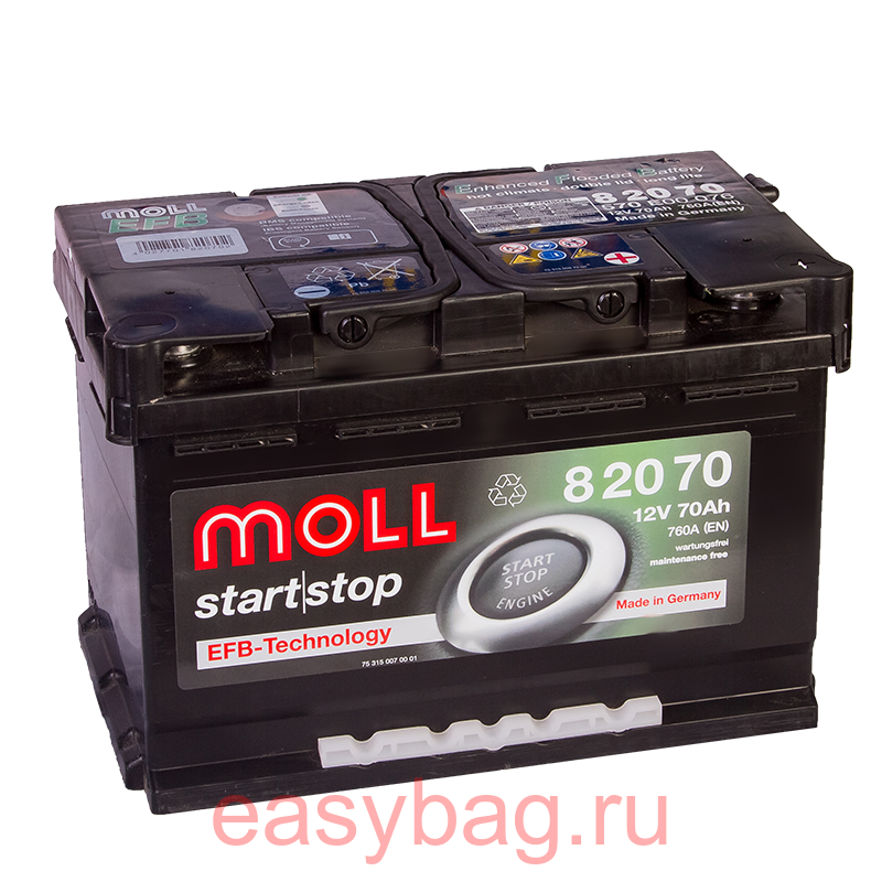 Аккумулятор Moll EFB Start-Stop 70Ач обратная полярность 734
