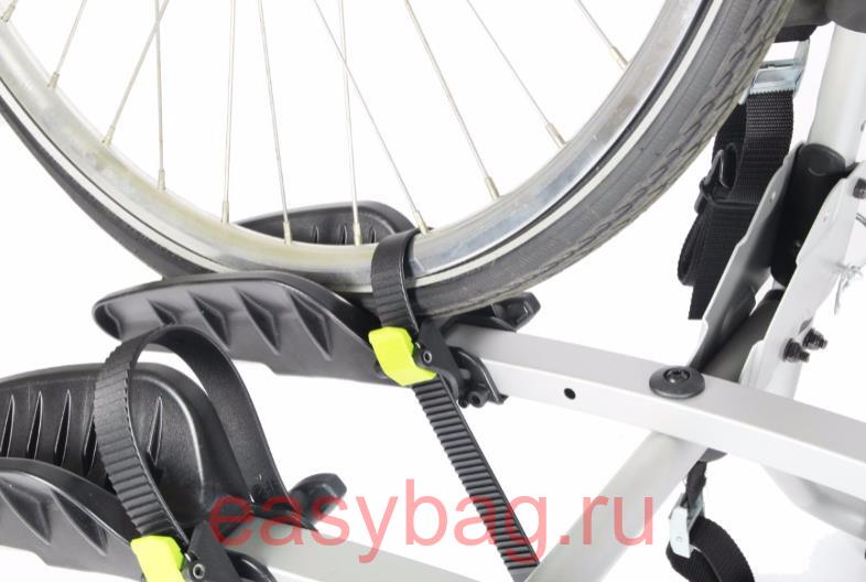 Удобство в эксплуатации данного крепления в том что велосипеды стоят и крепятся хабом за раму.