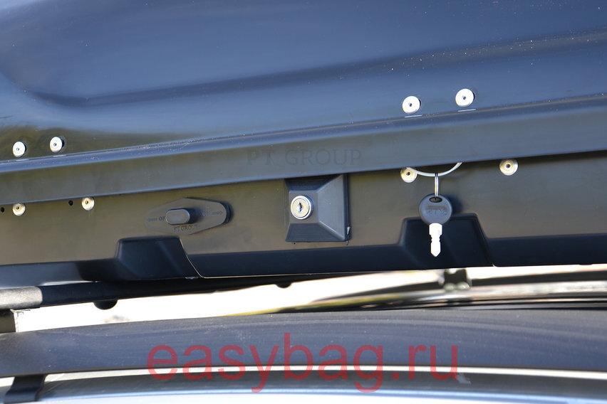 Бокс Турино 1, выполнен из пластика ABS с глянцевым покрытием. Имеет одностороннюю систему открытия крышки. В комплекте есть 4 ремня для крепления груза внутри автобокса. Крепление к поперечным дугам осуществляется за счет U-образными скобами шириной 80 мм. Центральный замок запирает крышку автобокса в 3-х местах.