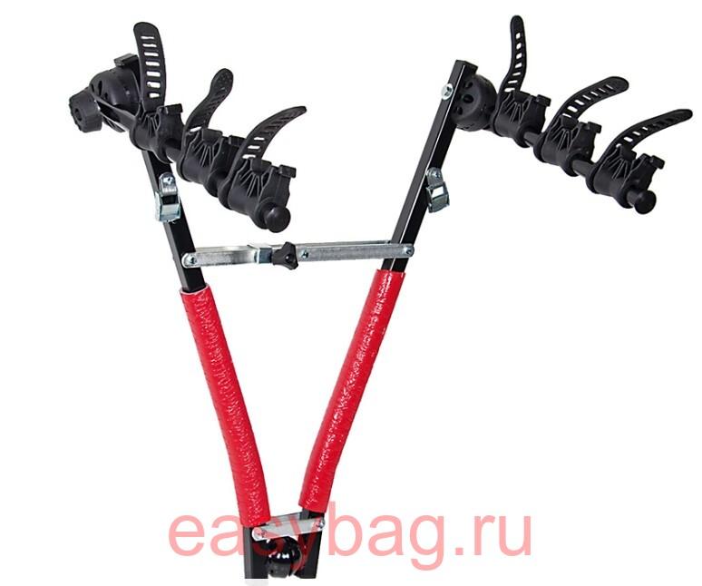 Велосипедное крепление Амос Бис Хак для перевозки трех велосипедов на прицепном устройстве (фаркоп). Велосипеды подвешиваются и крепятся за раму. Подходит для перевозки 3-х велосипедов одновременно. Грузоподъемность велосипедного крепления составляет 45 кг из расчета что каждый велосипед весит до 15 кг.