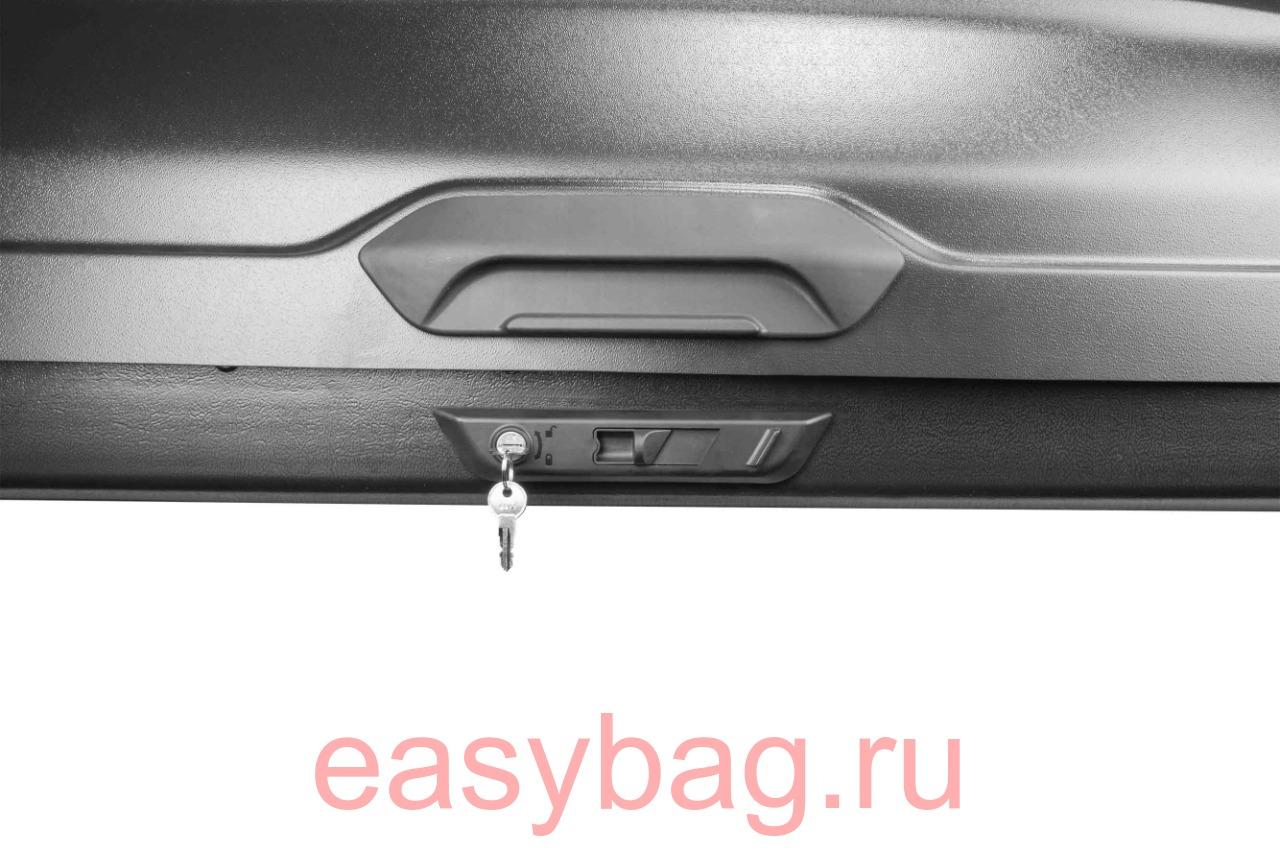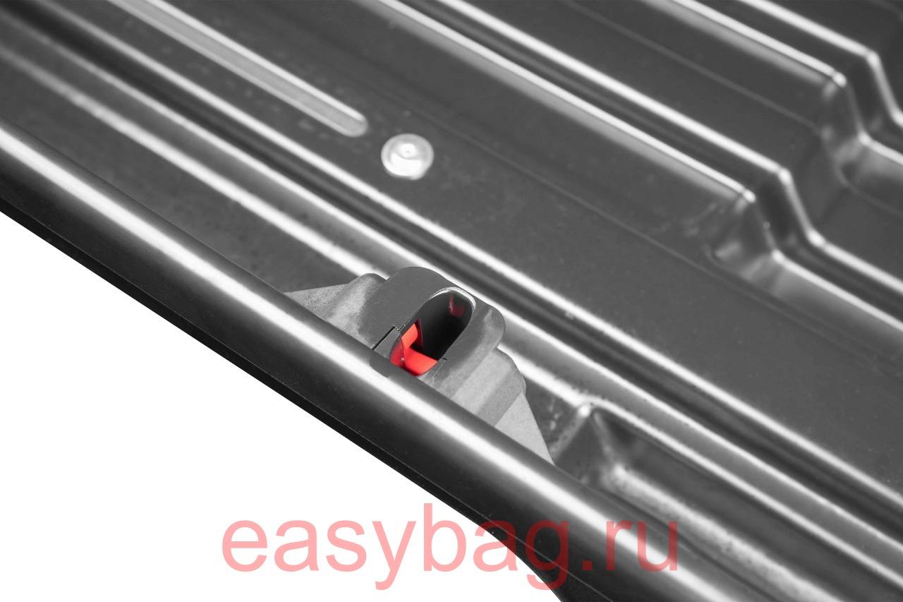 Все боксы LUX , снабжены двусторонними системами замков, позволяющей без труда осуществлять загрузку и разгрузку с обеих сторон автомобиля. При необходимости бокс можно сдвинуть к одной из сторон автомобиля и например разместить рядом крепление для транспортировки велосипеда или другие аксессуары .