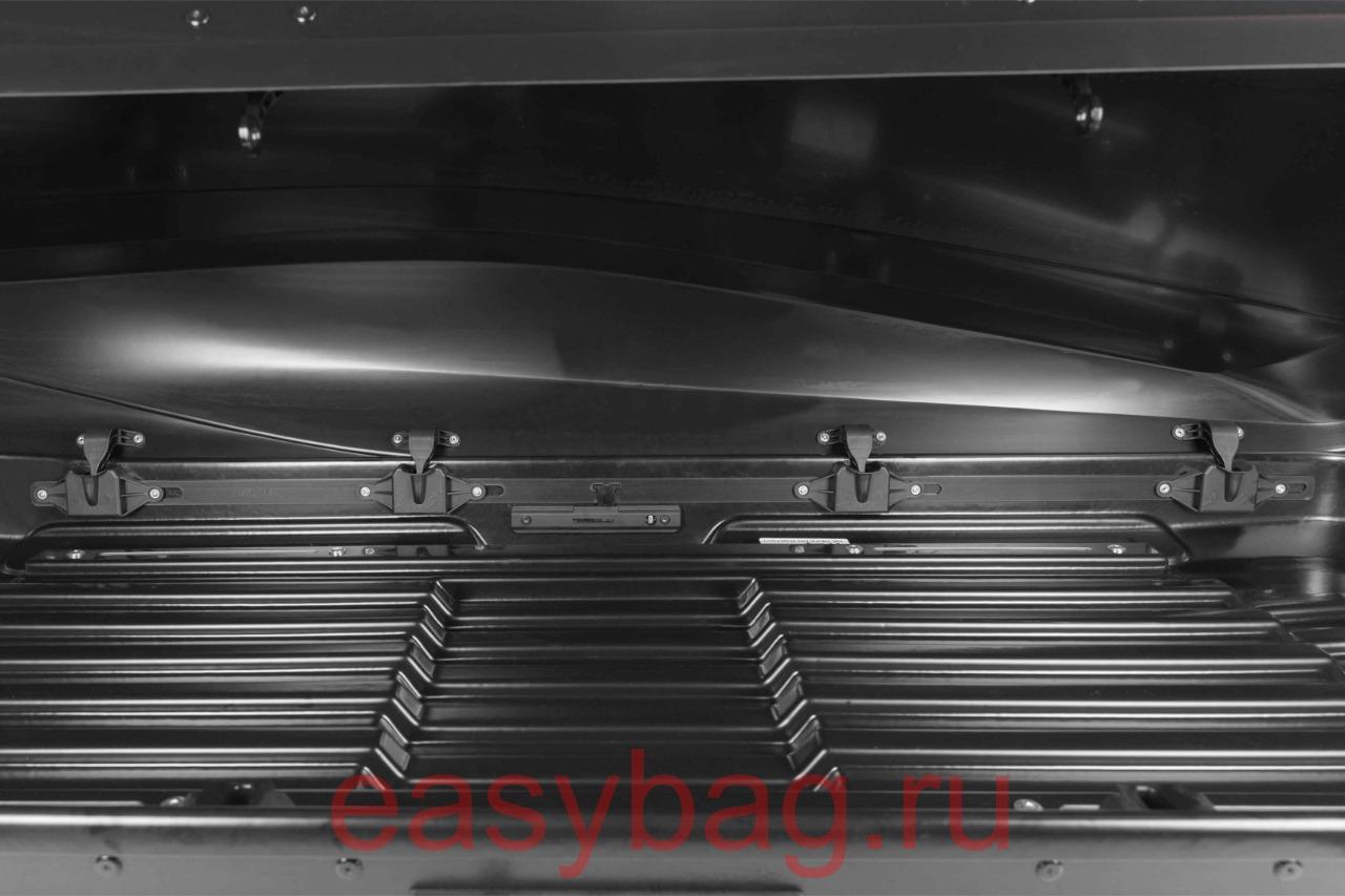 Все боксы LUX , снабжены двусторонними системами замков, позволяющей без труда осуществлять загрузку и разгрузку с обеих сторон автомобиля. При необходимости бокс можно сдвинуть к одной из сторон автомобиля и например разместить рядом крепление для транспортировки велосипеда или другие аксессуары .