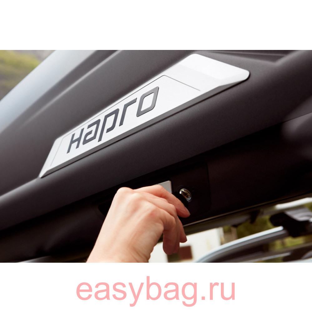 Крепление бокса к поперечинам ( Крабики ) - Premium-Fit с индикатором крутящего момента с храповым механизмом совместима со всеми видами перекладин (квадратные, круглые, аэродинамические) шириной до 95 мм. Блокиратор на крабике не позволит креплению Вашего автобокса прослабнуть в пути . Крепёжные лапы обработаны синтетическим материалом препятствующим царапинам в местах креплений на багажной системе. Лёгкое открытие и закрытие автобокса благодаря эргономичной ручке и новой системе запирающих механизмов. Ручки автобокса Хапро серии Тривор у замка активирует запорную арматуру, приподнимающую крышку и это позволяет освободить руки. При опускании крышки ручка сама приходит в запирающее положение одним щелчком, сообщая о полноценном закрытии даже без использования ключа. Ключ блокирует механизм и препятствует краже бокса и его содержимого.