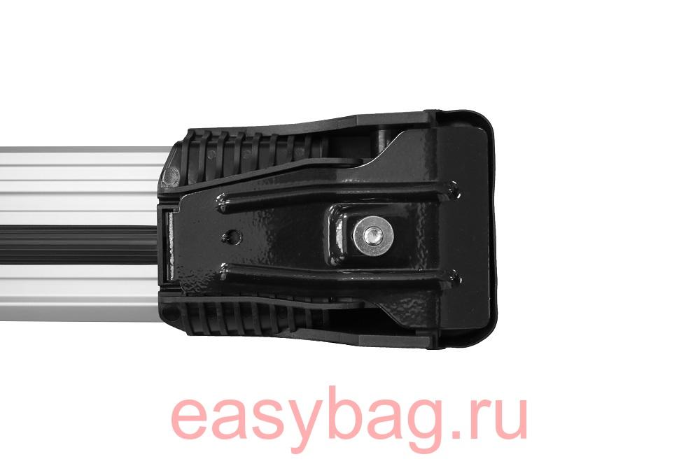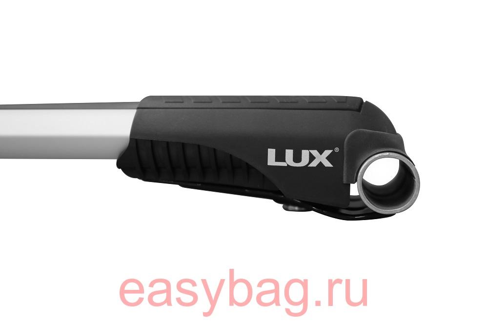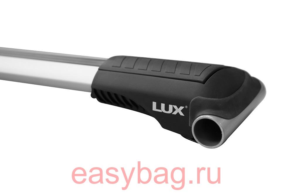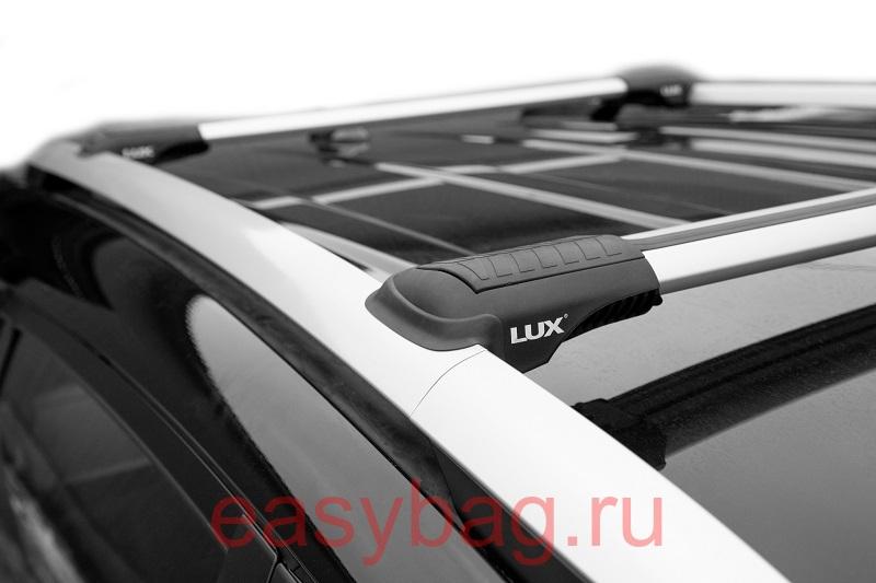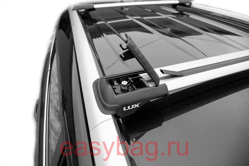 Багажная система LUX Hunter L45-R с серыми дугами для автомобилей с продольными рейлингами отступающими от крыши .