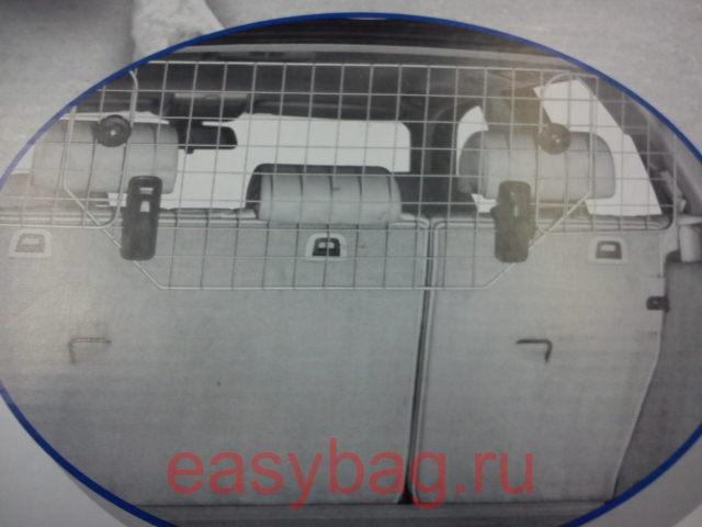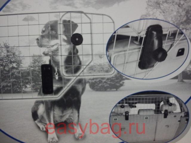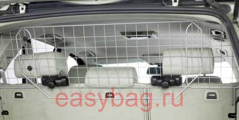 Сетка для собак с креплением на стойки подголовников сидений. Сетка окрашена в серебристый металлик, крепления к стойкам выполнены из композитного материала. Может крепиться как на задние, так и на передние подголовники. Регулируется по ширине. Быстрая установка без применения инструментов. Не нарушает пространство багажника и не требует демонтажа шторки багажника. Возможна установка на большинство машин с подголовниками. Регулеровка высоты (42см.) и ширины (90-124см.)