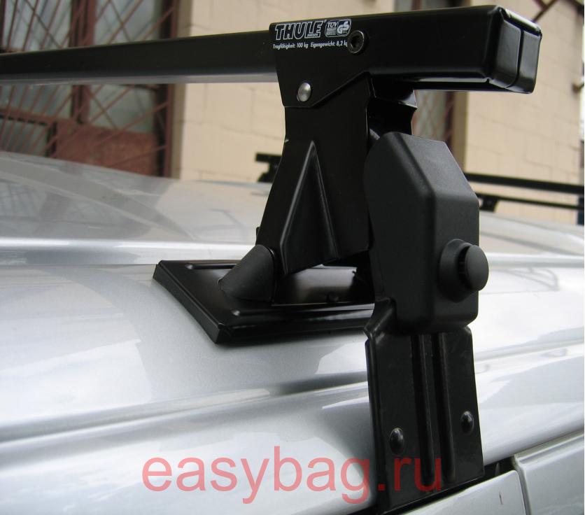 Багажник для автомобилей с гладкой крышей с захватом за дверной проем. Багажник состоит из 3х частей: опоры, поперечины и крепежного элемента. Багажники Туле как "конструктор", при смене автомобиля схожий по габаритам. Вам не нужно покупать новый багажник, а достаточно лишь докупить крепежный элемент для вашего нового автомобиля, либо более длинные/короткие поперечины - багажник готов. Еще не маловажный плюс - гарантия 5 лет на всю продуцию.
