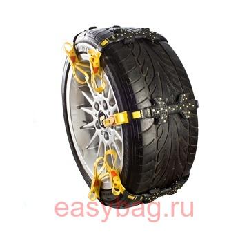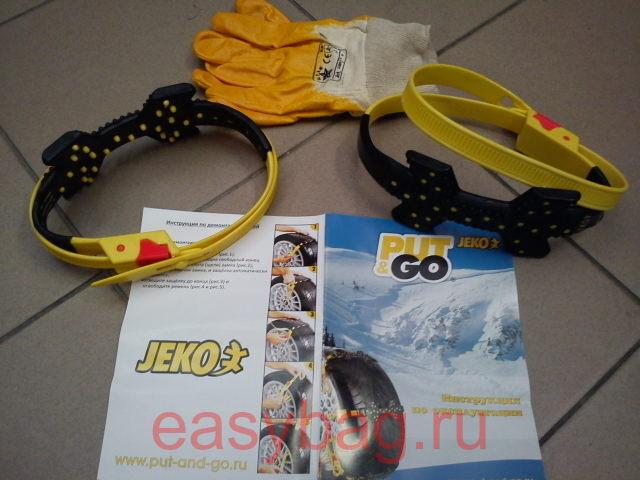 В комплекте: 12 ремней, перчатки и инструкция в тубусе жёлтого цвета. Длина ремней 1060 мм с максимальных охватом 860 мм, что позволяет монтировать их на большинство типоразмеров шин.