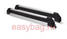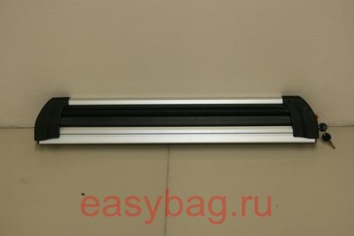 Крепление сделано из аллюминия и запирается на ключ. Простое и надежное крепление. Подходит как на прямоугольные дуги так и на аэродинамические. Крепление на аэродинамические поперечины осуществляется через Т-образный паз(который закрыт резинкой). Сдвигающееся основание позволяет снять лыжи не испачкав одежды.