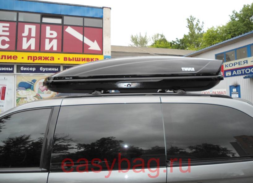 thule motion 900 - Это самый вместительный автомобильный бокс от Thule. Выпускаются в черном и сером цвете. Днище автомобильного бокса устроено таком образом что автобокс ложиться на багажник максимально низко, из-из специальных углублений в его основании. В комплекте с боксом туле идут три ремня для крепления багажа внутри бокса. Грузоподъемность автобокса motion 900 составляет 75 кг., но не нужно забывать о нагрузке на крышу именно вашего автомобиля (указано в вашей технической книжке автомобиля которую дает завод изготовитель). Двухстороннее открытие позволяет загружать и разгружать автобокс thule с максимальным удобством, да и прикрепить не составляет труда. Крепеж напоминает "краба", который надежно обжимает дуги багажника. Затягивать крепеж необходимо до специального щелчка, он оповестит вас что крепеж зафиксирован.