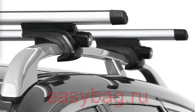 Багажник для автомобилей с рейлингами. Багажник состоит из 2х частей: опоры, поперечины. Багажники Туле как "конструктор", при смене автомобиля схожий по габаритам. Вам не нужно покупать новый багажник, а достаточно лишь докупить крепежный элемент для вашего нового автомобиля, либо более длинные/короткие поперечины - багажник готов. Еще не маловажный плюс - гарантия 5 лет на всю продуцию.